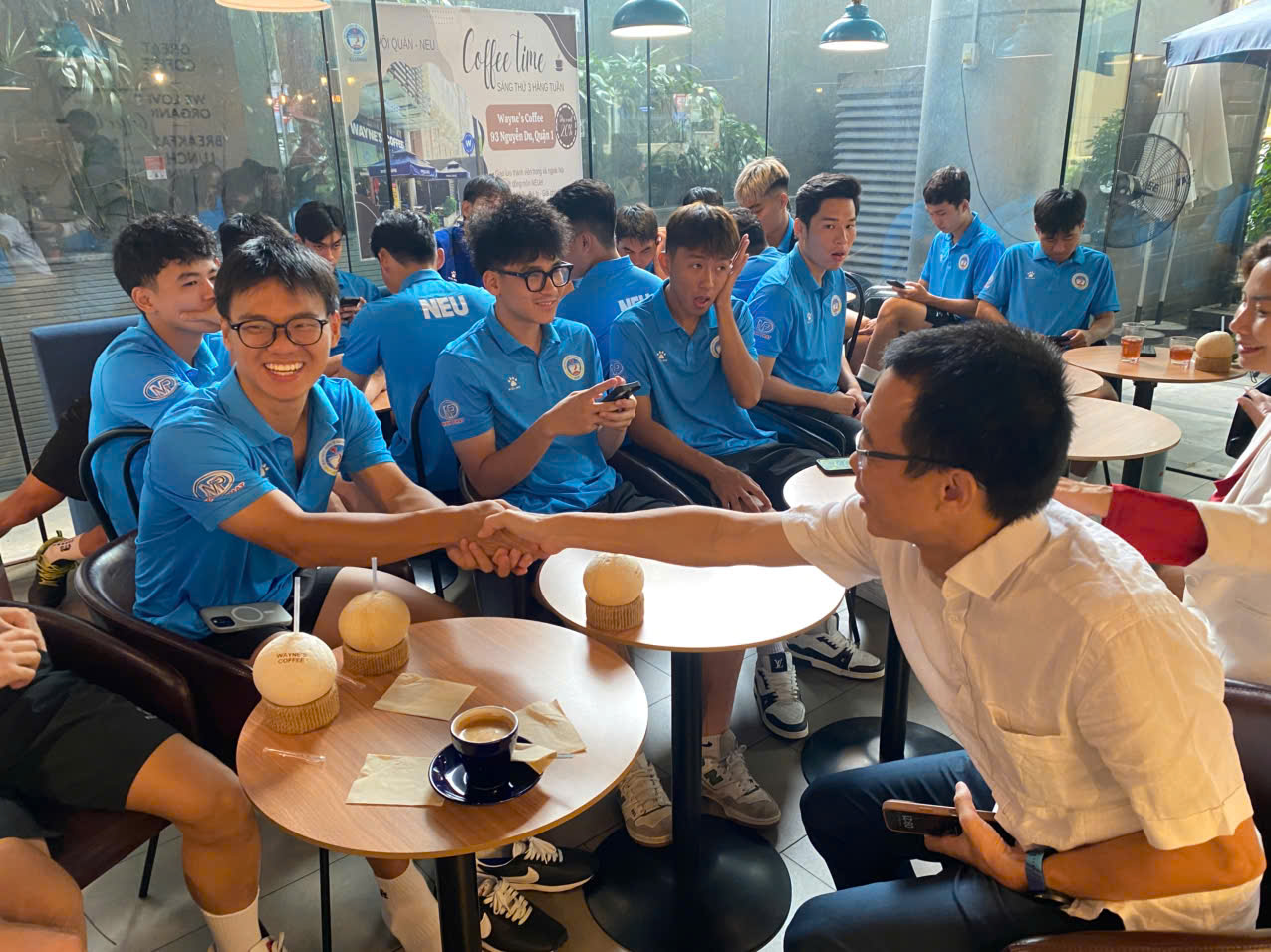 Buổi gặp gỡ diễn ra trong bầu không khí ấm áp, chan chứa tình cảm thầy trò, đồng môn, là dịp để các thế hệ NEU cùng ôn lại kỷ niệm, chia sẻ tinh thần “Kinh tế Quốc dân – Bản lĩnh và Tỏa sáng”. Các anh chị Cựu sinh viên đã gửi tới đội tuyển những lời động viên, khích lệ tinh thần thi đấu kiên cường, đồng thời chia sẻ nhiều kinh nghiệm quý báu về tinh thần thể thao, sự đoàn kết và nỗ lực vượt khó.