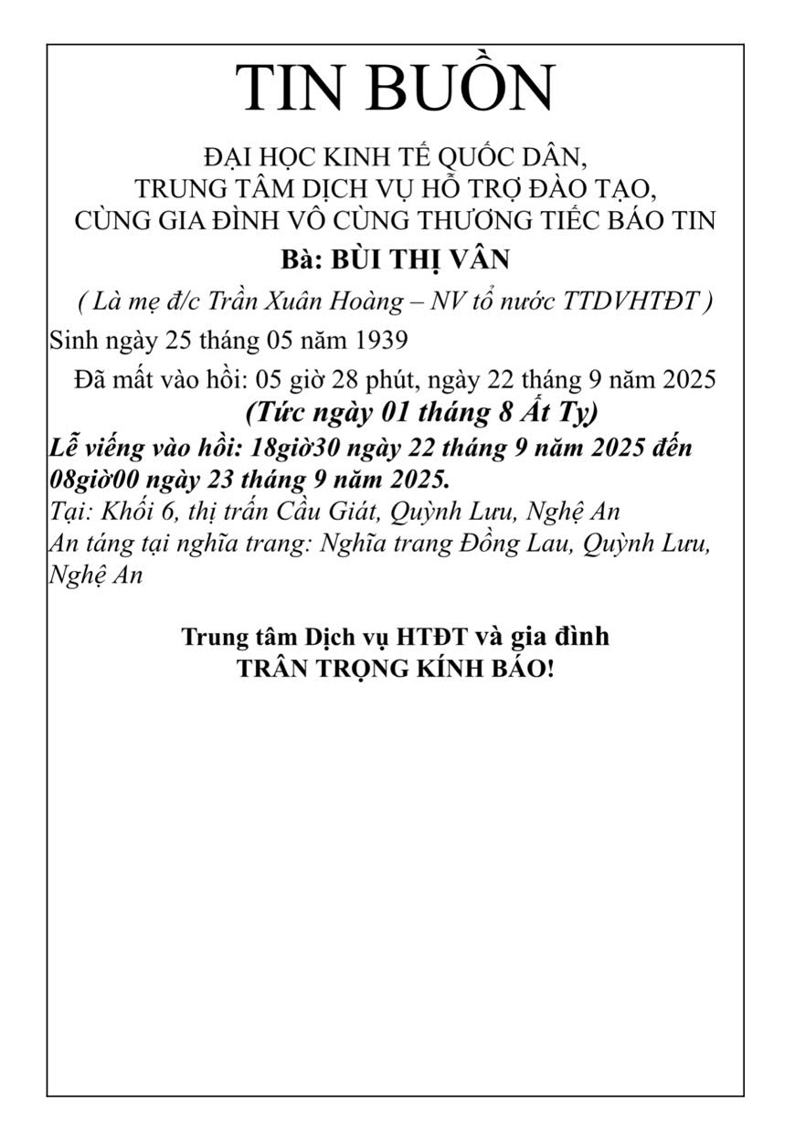 Trung tâm dịch vụ hỗ trợ đào tạo, Phòng Quản trị Thiết bị thông báo tin buồn